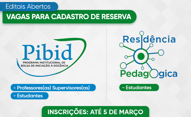 Inscrições abertas para Pibid e Residência Pedagógica