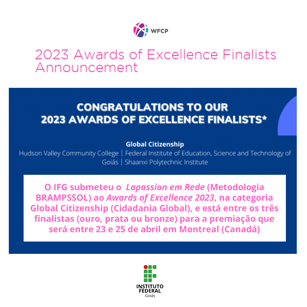 Premiação será realizada no Canadá, entre os dias 23 e 25 de abril. IFG também participará do Guia Mundial de Boas Práticas da WFCP