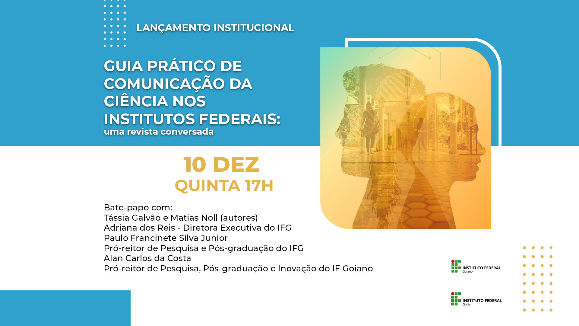 Lançamento ao vivo será transmitido no canal do IFG no YouTube, no dia 10, às 17 horas