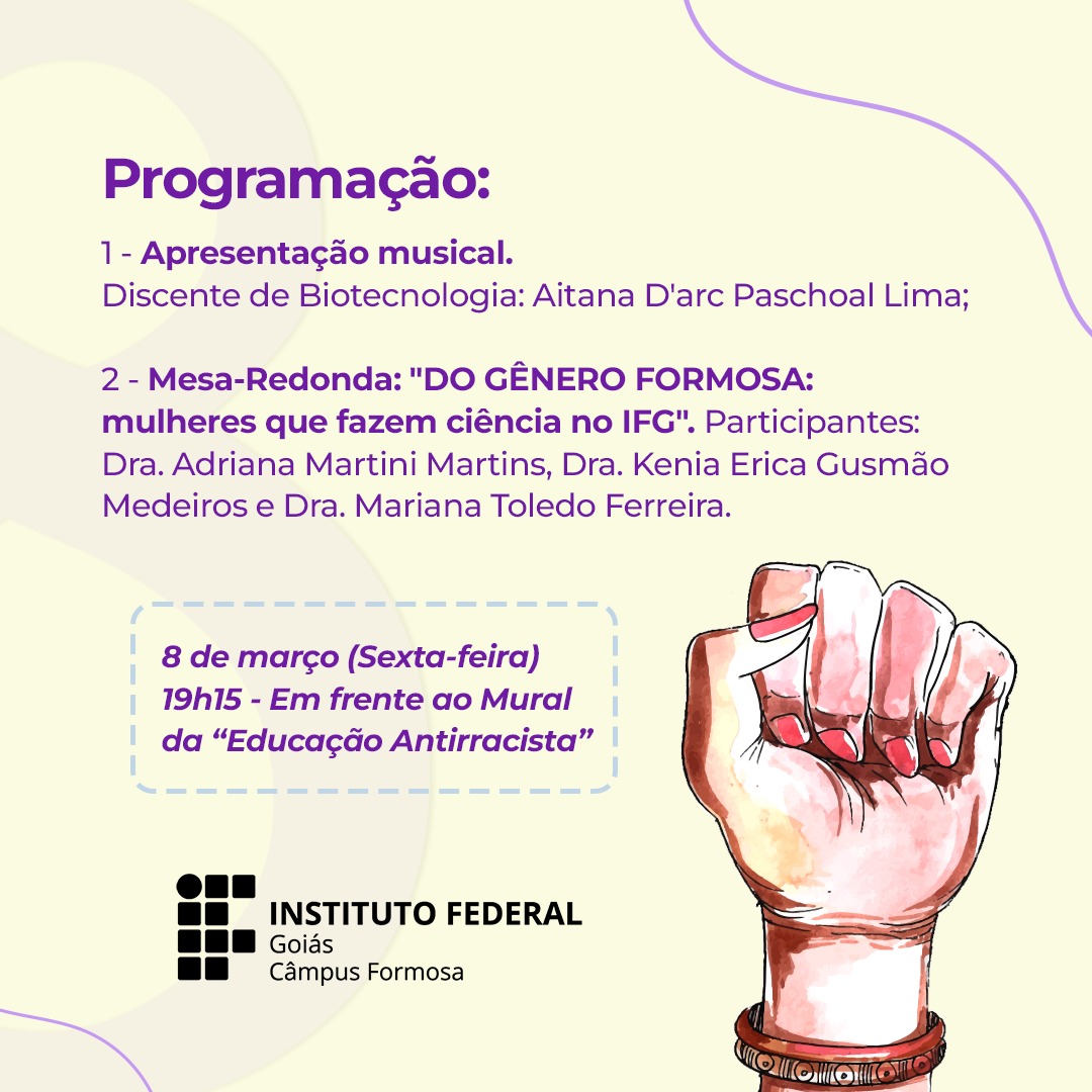 Será nesta sexta-feira, 8 de março, às 19h15, em frente ao mural Educação Antirracista, a Aula Inaugural do curso de pós-graduação Educação para Cidadania. O evento celebrará o 8 de março, Dia Internacional da Mulher.