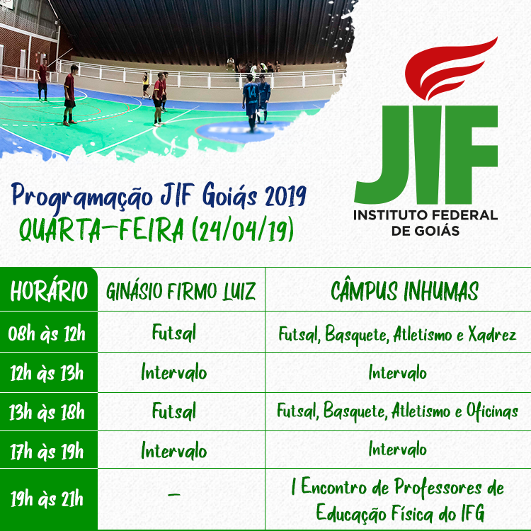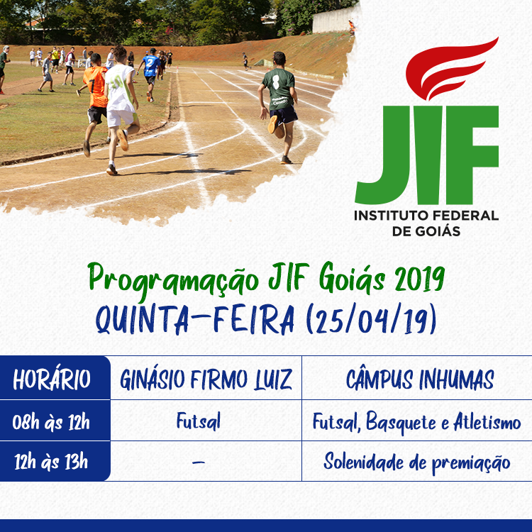Acesso ao esporte escolar, diálogo, noções de cooperação e respeito. Tolerância, competição saudável e vivência de outras práticas corporais para além das aulas de Educação Física. Aliados à integração social e cultural entre estudantes do Instituto Federal de Goiás (IFG), esses são os objetivos dos Jogos do IFG (JIF), que nessa edição serão realizados em duas etapas: a primeira, de 23 a 25 de abril, em Inhumas, e a segunda, de 20 a 22 de maio, em Jataí.