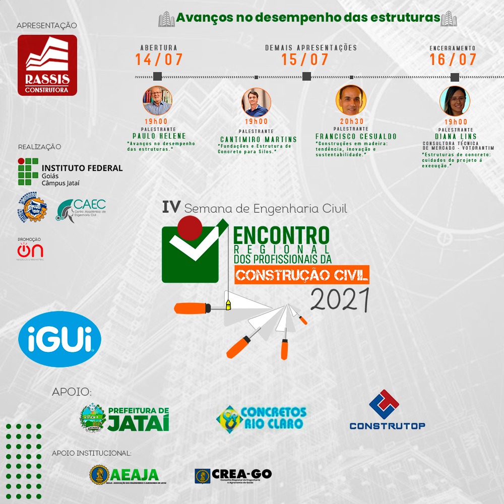 14, 15 e 16 de julho - IV Semana de Engenharia Civil (IV SEMEC) e do Encontro Regional dos Profissionais da Construção Civil