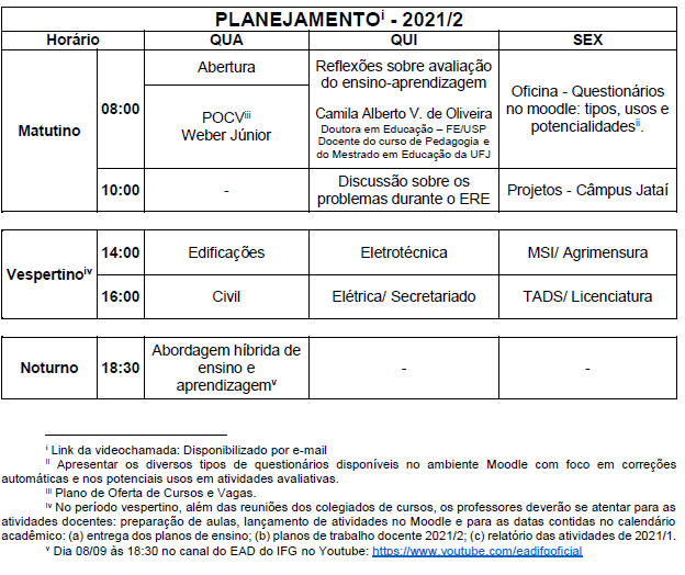 Semana de Planejamento de 2021/2 - 8,9 e 10 de setembro