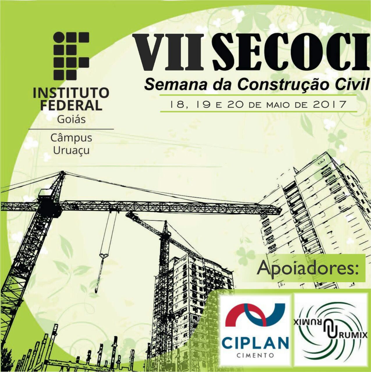 A VII Semana da Construção Civil do Câmpus Uruaçu é um evento voltado para os alunos do curso técnico em Edificações e para o superior em Engenharia Civil. Serão realizadas palestras, workshops e minicursos sobre temas diversos na área da construção civil. A programação completa e as inscrições estarão disponíveis em breve.