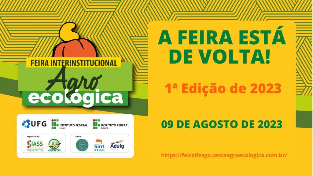 Servidores, estudantes e comunidade externa, dia 9 de agosto, será realizada a 1ª edição de 2023 da Feira Agroecológica. Anotem na agenda e participem!