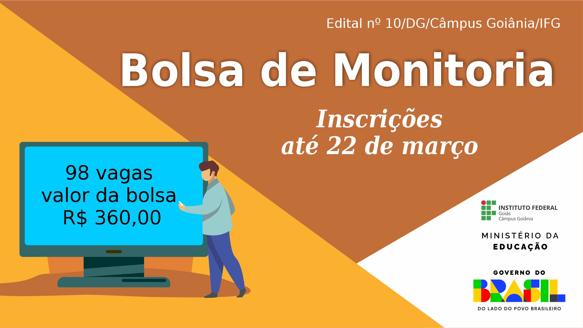 Edital prevê 98 bolsas, no valor de R$ 360 reais, para estudantes regulares do Câmpus Goiânia