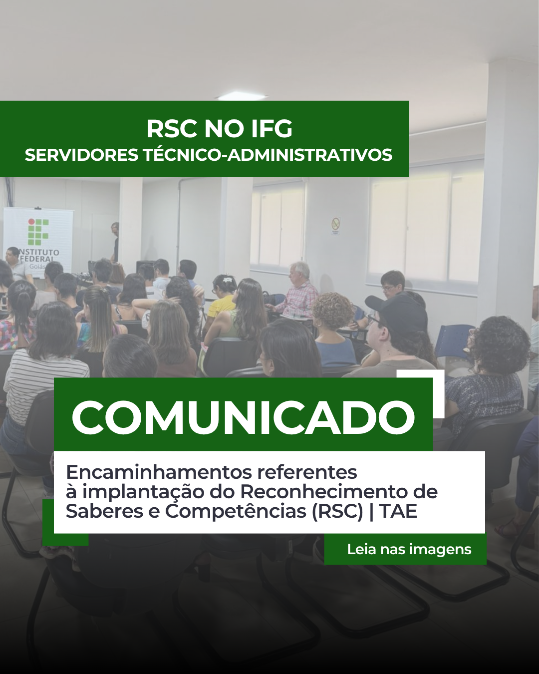 O Instituto Federal de Goiás (IFG), por meio da Pró-Reitoria de Desenvolvimento Institucional e Recursos Humanos (Prodirh) e da Comissão Interna...
