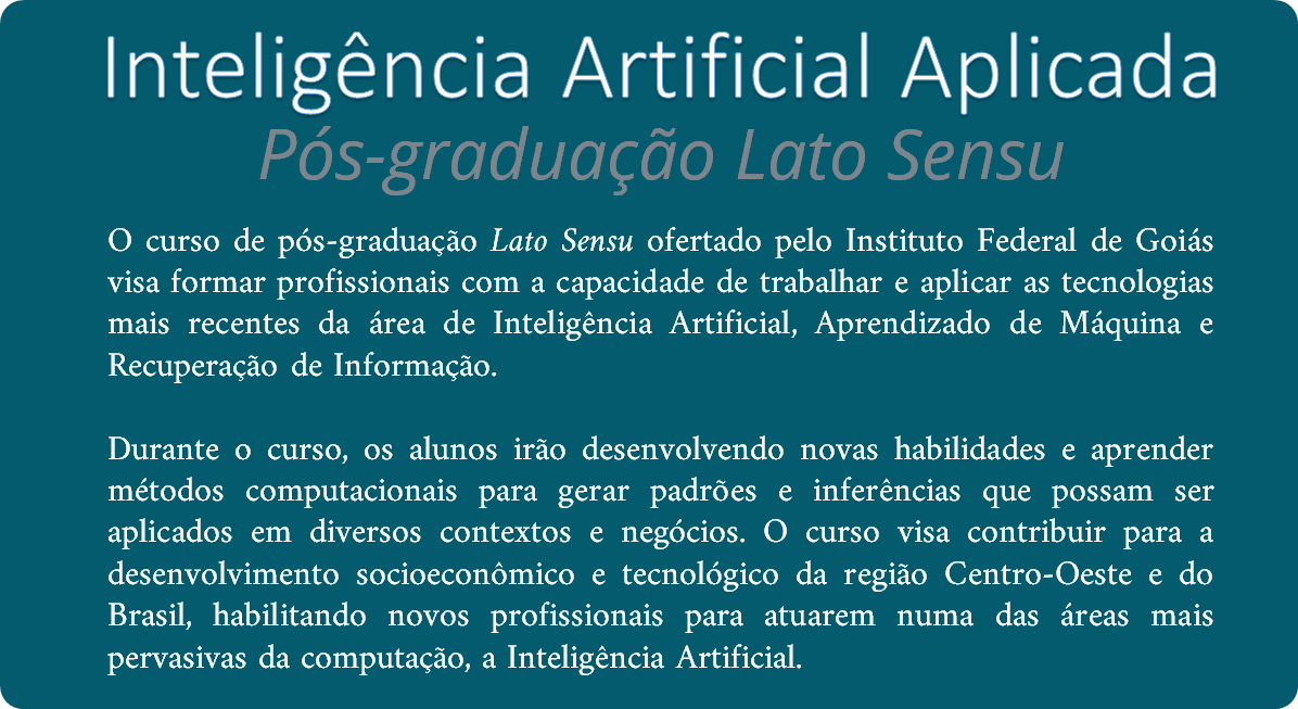 Pós-graduação em Inteligência Artificial Aplicada - IFG