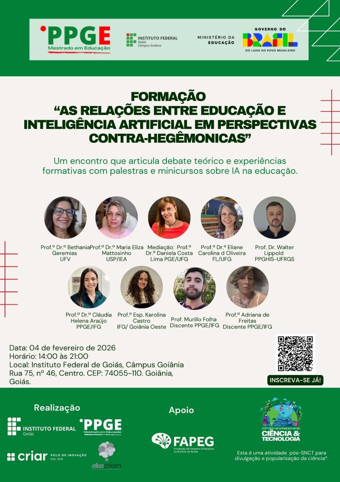 Data: 4 de fevereiro (quarta-feira) | Horário: 14h às 21h | Local: Câmpus Goiânia do IFG
