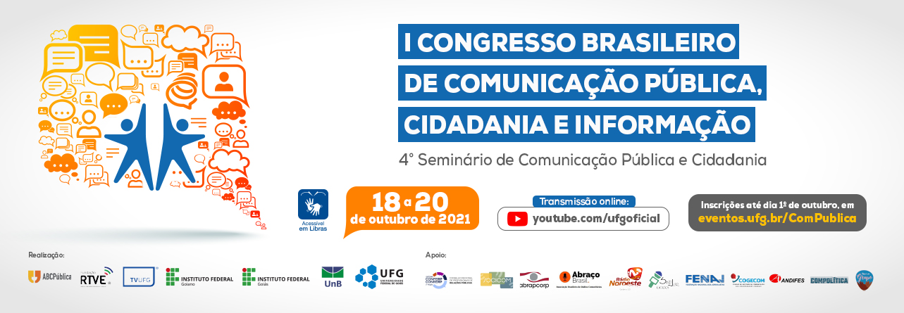O congresso é uma parceria da ABCPública com a Universidade Federal de Goiás (UFG), Fundação RTVE e TV UFG, Instituto Federal Goiano, Instituto Federal de Goiás e Universidade de Brasília. As inscrições estão abertas e vão até o dia 1º de outubro, totalmente gratuitas.