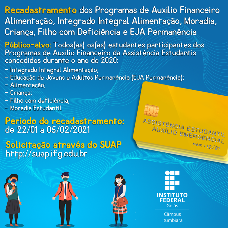 Alunos participantes dos programas de auxílio estudantil devem realizar o recadastramento