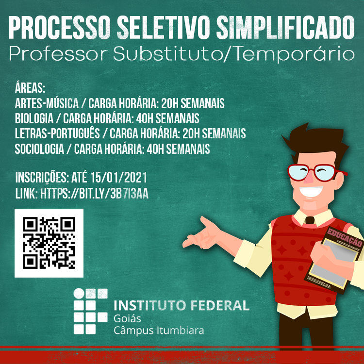 Câmpus Itumbiara abre seleção para Professores de Biologia, Sociologia, Artes-Músicas e Letras-Português