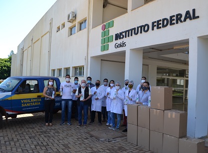 Câmpus Itumbiara doa mais de 1.000 frascos de álcool gel e glicerinado à Vigilância Sanitária de Itumbiara e Poder Judiciário