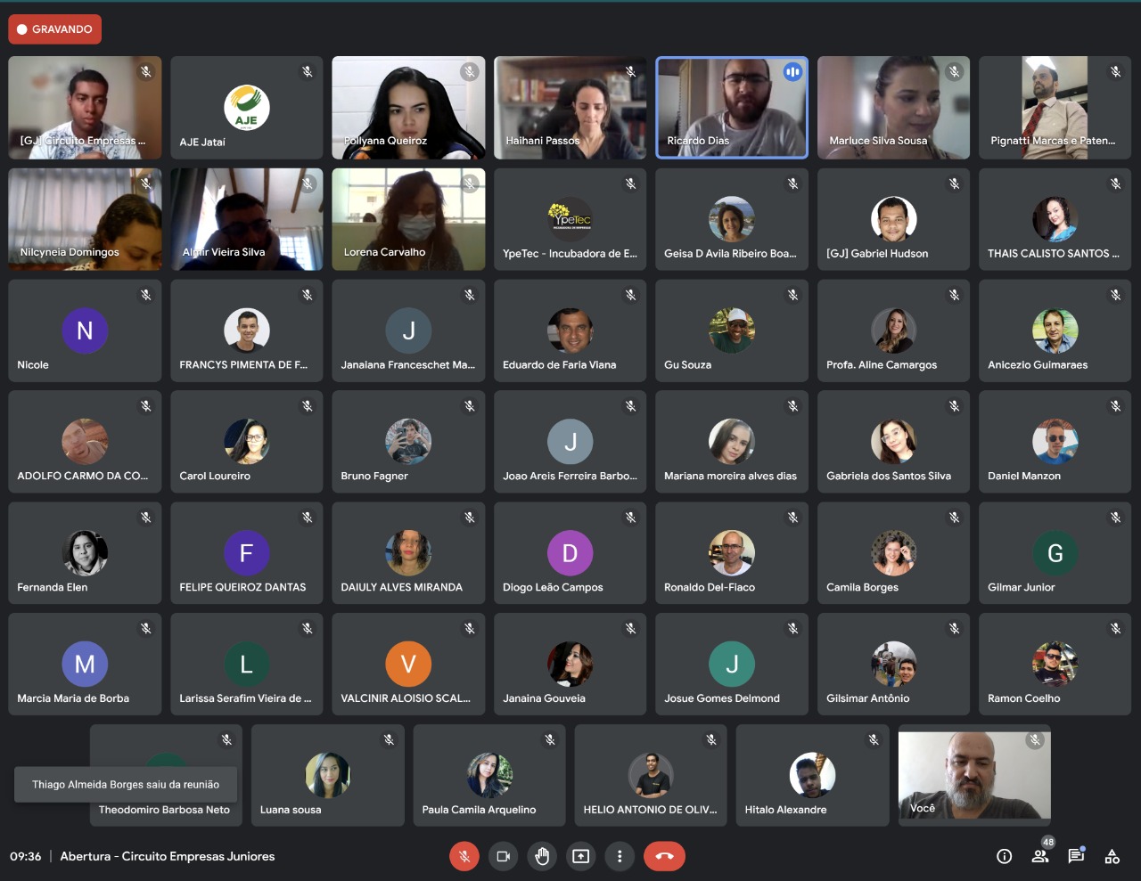 Ocorreu hoje, dia 1.º de setembro de 2021, a abertura do I Circuito Empresas Juniores, organizado por diversas instituições de ensino públicas e privadas de Goiás, dentre elas o IFG, Universidade Federal de Jataí, UEG, o IF Goiano e a Universidade Federal de Catalão, e conta com a participação da Goiás Júnior - Federação Goiana de Empresas Juniores.