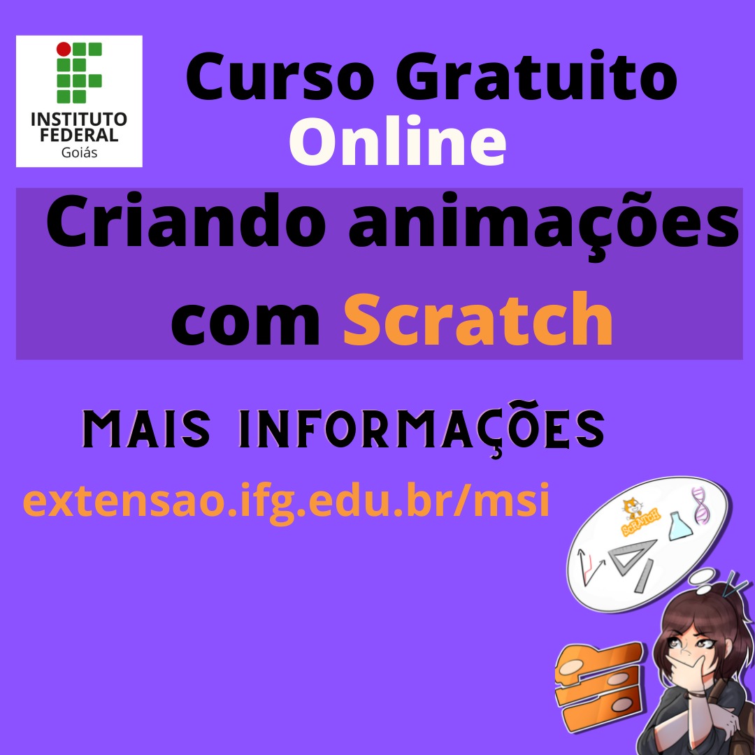 Estão abertas as inscrições para os cursos de Animação com Scratch e da Plataforma Google para a Educação oferecidos pelo Instituto Federal de Goiás (IFG) – Câmpus Jataí. Os cursos serão realizados de forma gratuita e online .