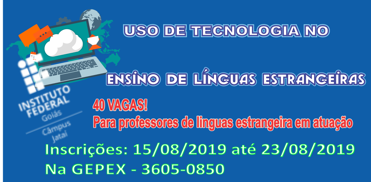 Estão abertas até o dia 23/08/2019 as inscrições para o CURSO DE EXTENSÃO USANDO A TECNOLOGIA NO ENSINO DE LÍNGUAS ESTRANGEIRAS, oferecida, prioritariamente, a professores de línguas...
