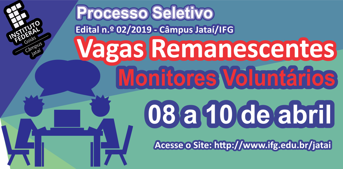 Câmpus Jataí Publica Edital de vagas remanescentes de monitoria - 2019/1