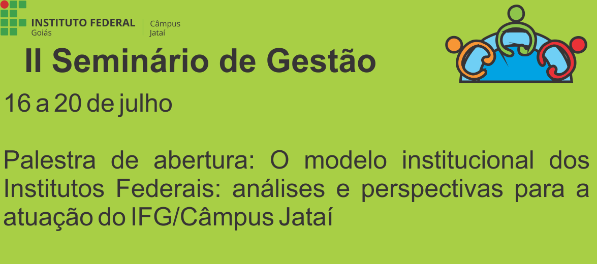 Começa na próxima segunda-feira, 16 de julho, o II Seminário de Gestão do Instituto Federal de Goiás (IFG) – Câmpus Jataí. Organizado pela Direção-Geral do Câmpus, o evento tem...