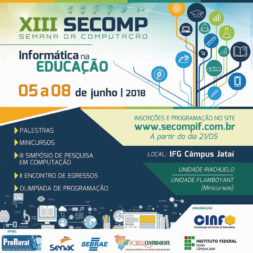 Começa nesta terça-feira, 5, a XIII Semana de Computação do Instituto Federal de Goiás (IFG) – Câmpus Jataí. O evento irá tratar do tema Informática na Educação e reunirá...