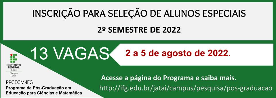 O Programa de Pós-Graduação em Educação para Ciências e Matemática abriu hoje, 2 de agosto, processo seletivo para oferta de 13 vagas para alunos especiais do programa. Os interessados em concorrer a uma das vagas deverá preencher a ficha de inscrição e enviar para o email Este endereço de email está sendo protegido de spambots. Você precisa do JavaScript ativado para...