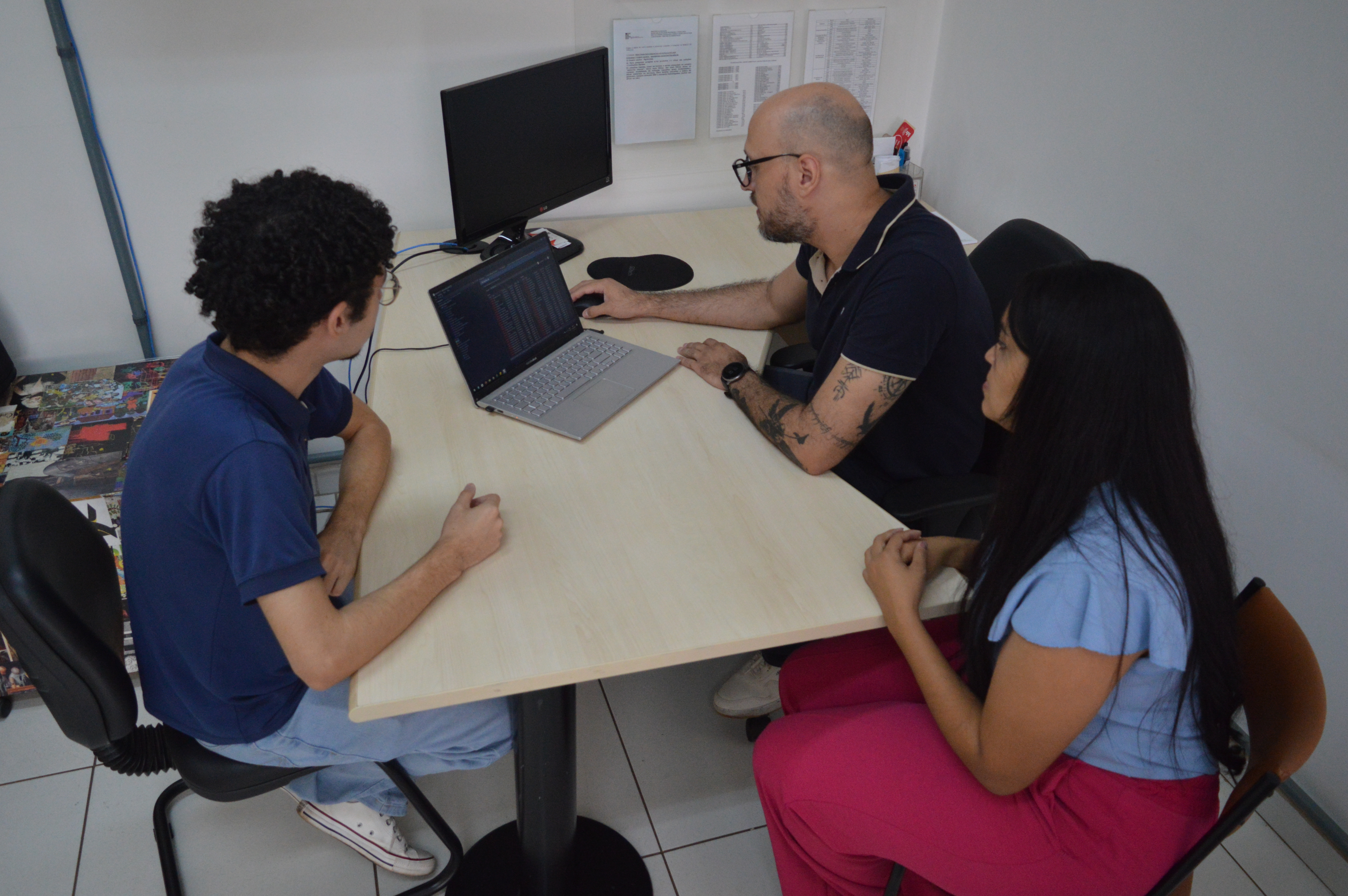 Professor Thomas Leal e os estudantes pesquisadores Renata Hiany e Gabriel Cunha utilizaram o OpenLCA para analisar os dados trabalhados na pesquisa