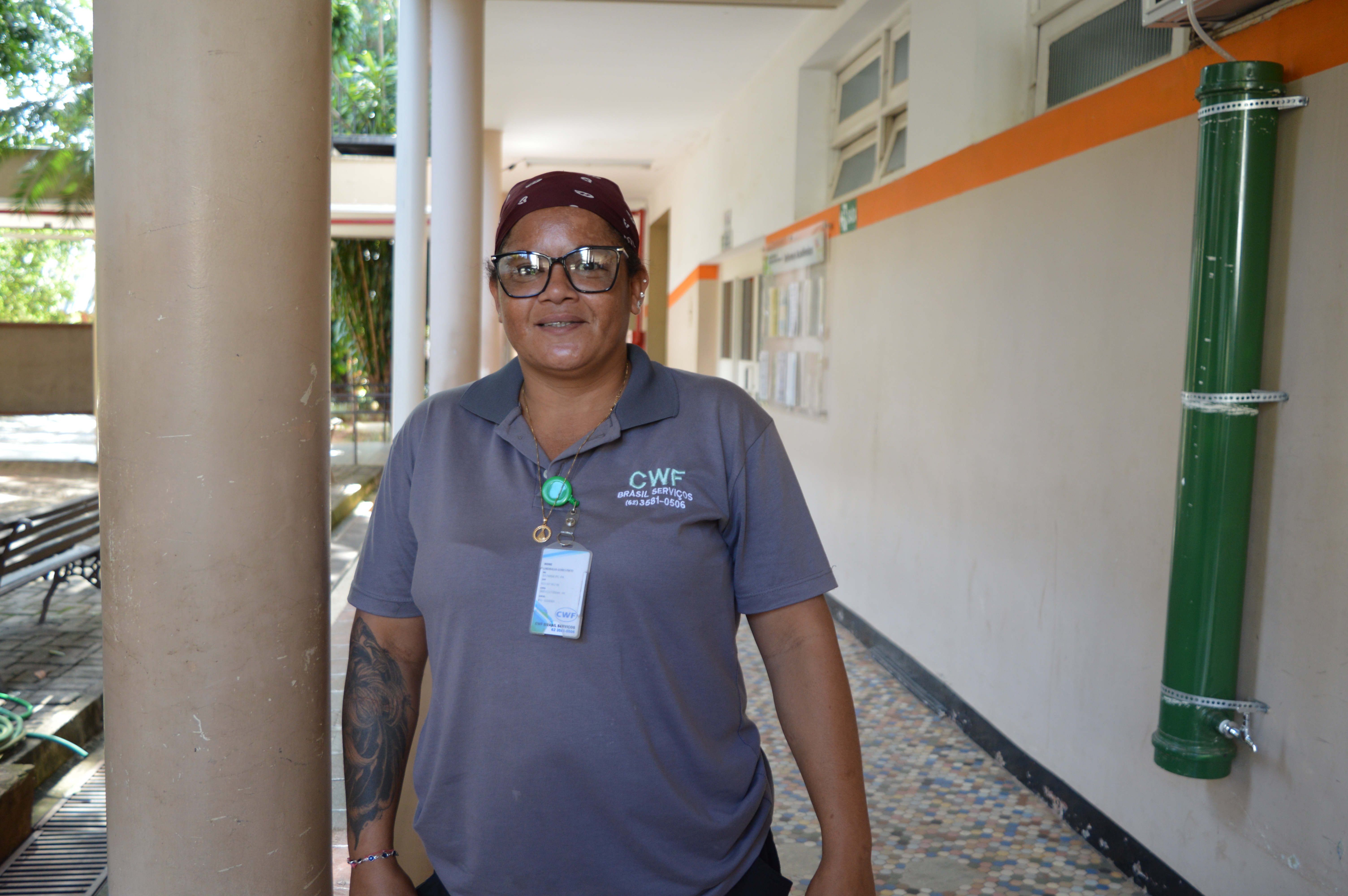 A servidora terceirizada Lindinalva Gomes Pinto atua há sete meses no Câmpus Goiânia e disse que está sendo uma experiência muito boa, especialmente pelo diálogo com os demais colegas. Lindinalva deseja aprender um pouco mais sobre a Instituição, para aplicar em seu local de trabalho.