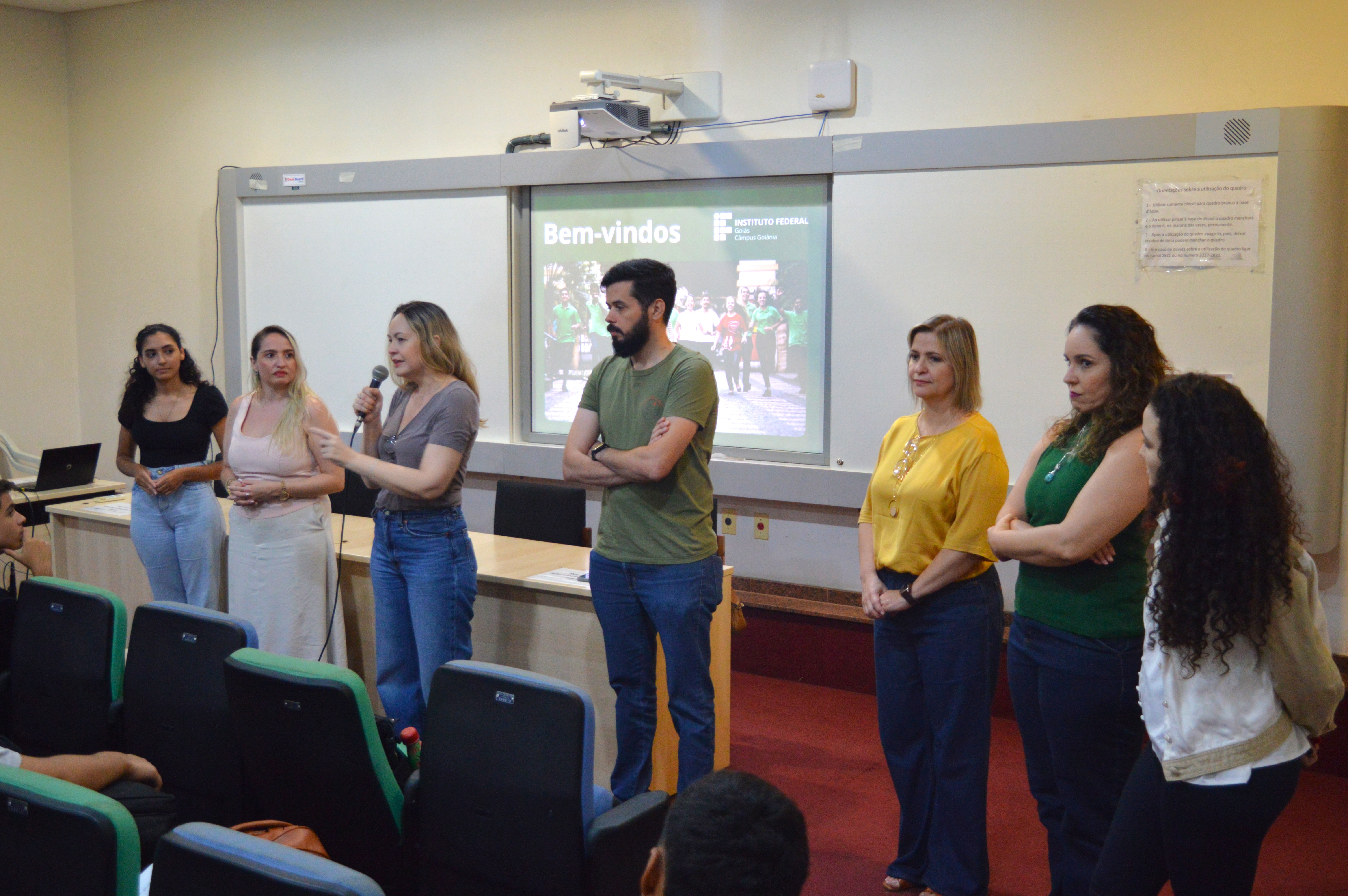 A gerente de Pesquisa, Pós-Graduação e Extensão do câmpus, professora Fabiane Costa, também reforçou esse ponto de vista institucional ao abordar a verticalização do ensino, que é uma característica do IFG. Ela explicou aos estudantes a possibilidade de entrar em um curso técnico integrado ao ensino médio, em seguida poder fazer uma graduação na mesma área e, em seguida, uma pós-graduação, tudo ofertado pela mesma Instituição.