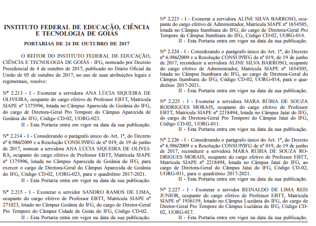 Diretores-gerais eleitos para nove câmpus são nomeados para o quadriênio 2017-2021 pelo Reitor do IFG