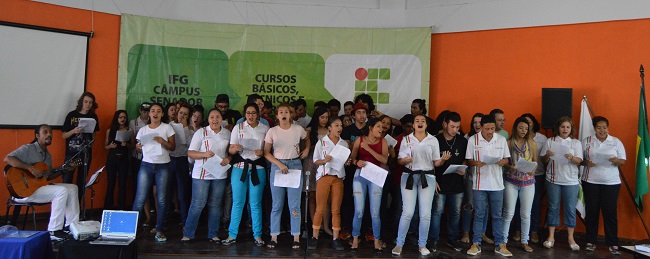 Foi em clima de descontração que o Câmpus Senador Canedo do Instituto Federal de Goiás (IFG) encerrou na manhã de sábado, 25, sua IV Semana de Educação, Ciência e Tecnologia (Secitec). A programação teve início com a apresentação musical dos alunos dos primeiros e segundos anos de Automação Industrial e Mecânica, que foi conduzida pelo professor Lucas Moyses. Depois, para finalizar, foi a vez da sessão pipoca, com a exibição da animação “Donald no país da Matemágica”. As duas atividades foram realizadas no Auditório da Biblioteca Municipal.