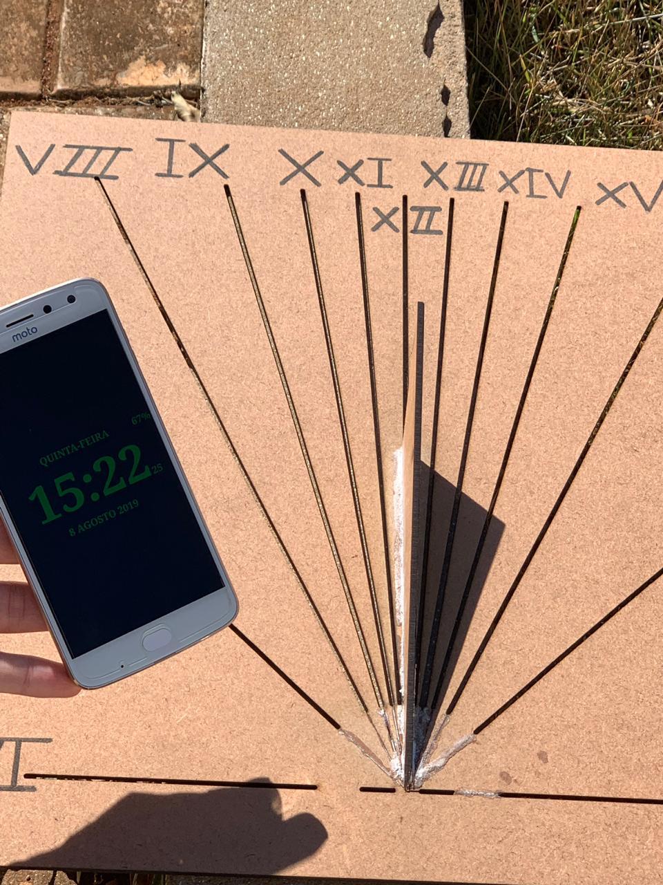 Você está aqui: Página inicial > Próximos Eventos (Câmpus Goiânia) > IFG > Câmpus > Valparaíso > Notícias do Câmpus Valparaíso > Aluno do IFG Câmpus Valparaíso constrói relógio solar com apenas 40 reais