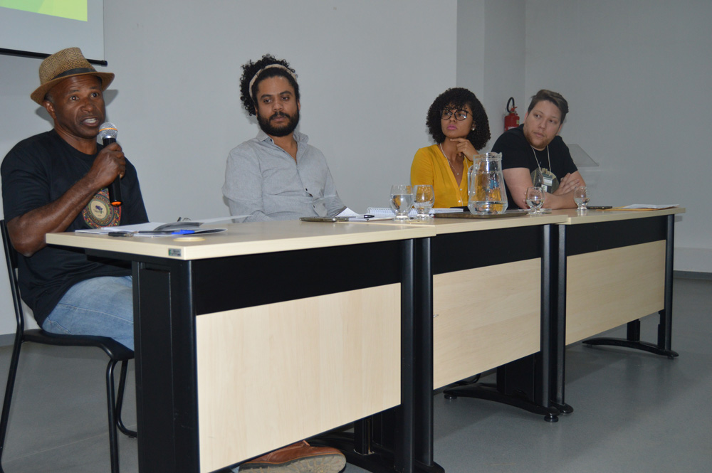 Mesa-redonda: da esquerda para a direita- Manoel, Francklin, professora Thaís Rodrigues e professor Luiz Fernando (os dois últimos mediadores do debate)