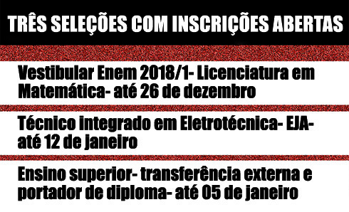 Três seleções com inscrições abertas para o Câmpus Valparaíso do IFG