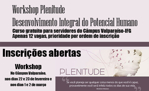Inscrições abertas para o workshop Plenitude, para servidores do Câmpus Valparaíso