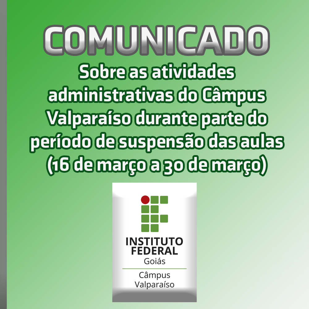 Comunicado sobre funcionamento das atividades administrativas durante parte do período de suspensão das aulas