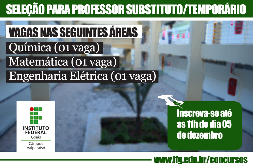 IFG Câmpus Valparaíso está com inscrições abertas para vagas de professor substituto/temporário