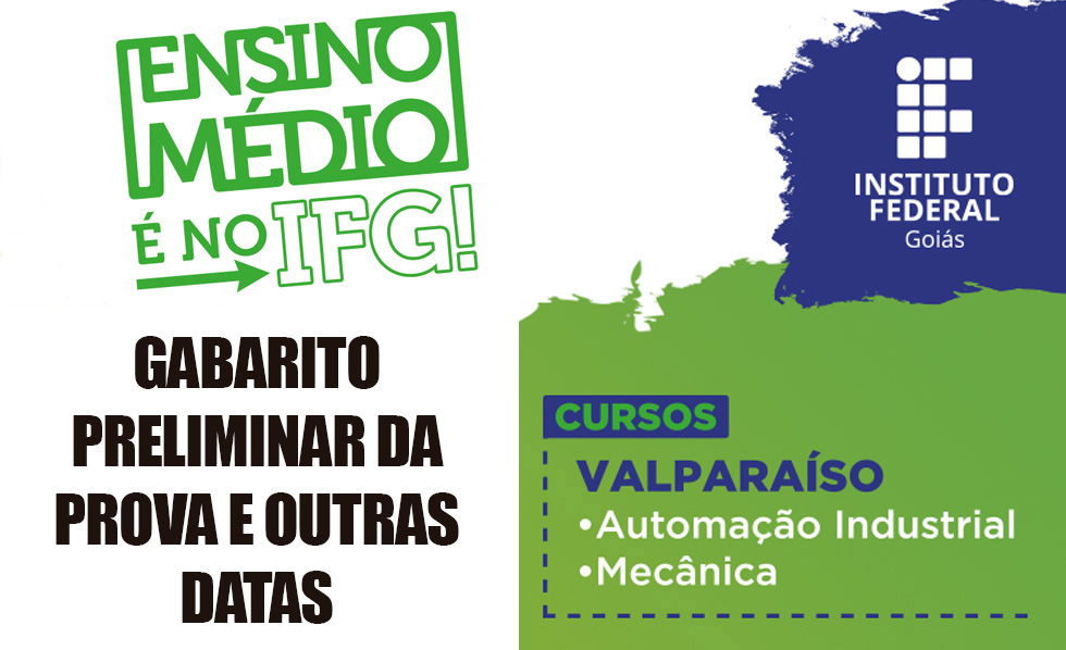 - Dia 21 de outubro: prova dos cursos técnicos integrados do IFG. Atenção! Dois locais irão sediar as provas do Câmpus Valparaíso, veja onde você vai fazer a sua!