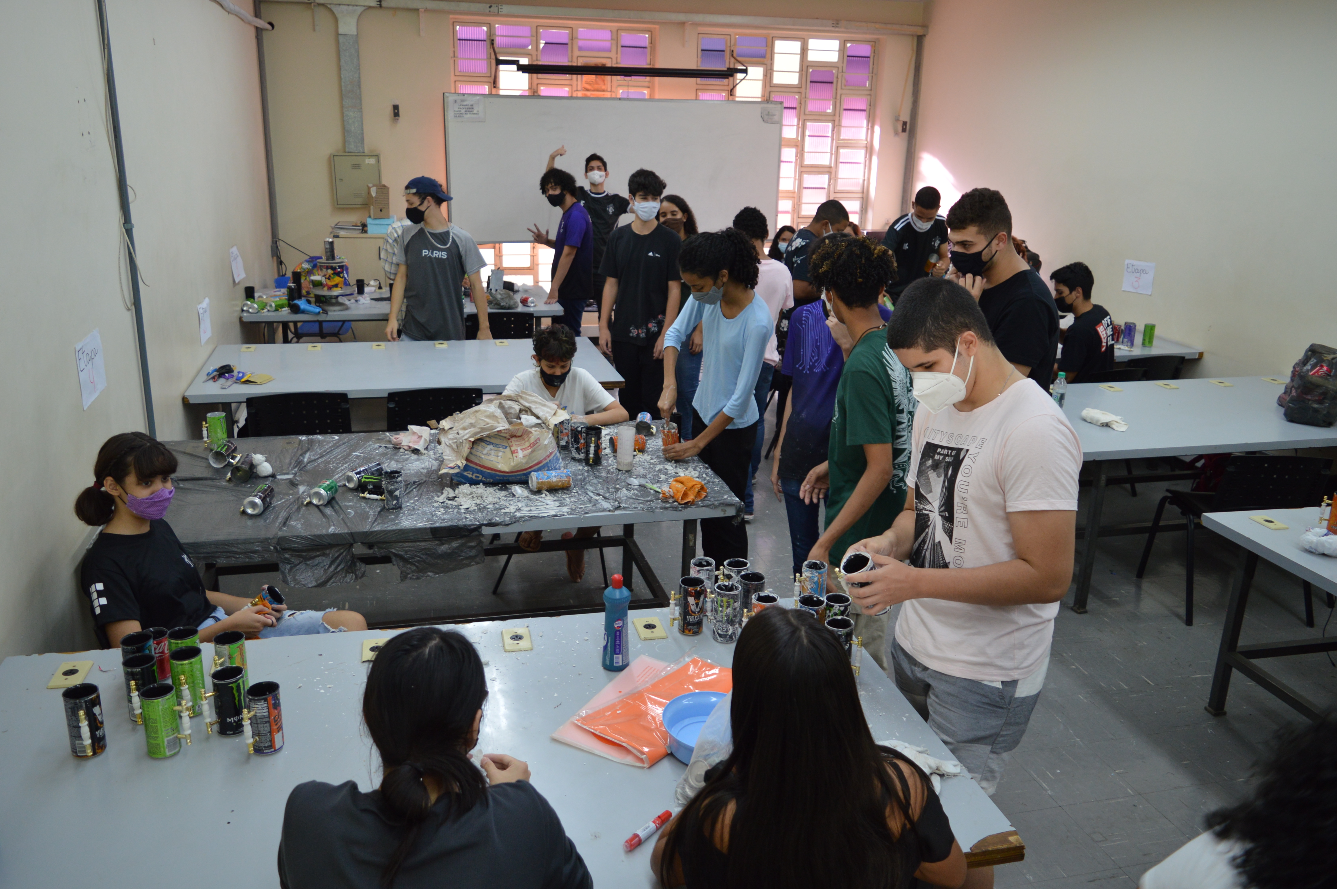 As latinhas, que são arrecadadas pela equipe ou coletadas nos pontos de doação espalhados pelo Câmpus Goiânia, recebem um tratamento especial durante as jornadas da miniempresa, que ocorrem desde o dia 27 de abril, sempre às quartas-feiras, na Sala S-304, no período vespertino. Lá os discentes recortam a parte superior do material, lavam e dão acabamento, inserindo puxadores, que vão funcionar como as alças da caneca. Para transformá-las em canecas térmicas, os estudantes utilizam gesso em sua produção. A finalização é a parte da caracterização das canecas, que podem ser personalizadas a gosto do cliente. Cada etapa desse processo é realizado por equipes, nas quais os 31 alunos são divididos.