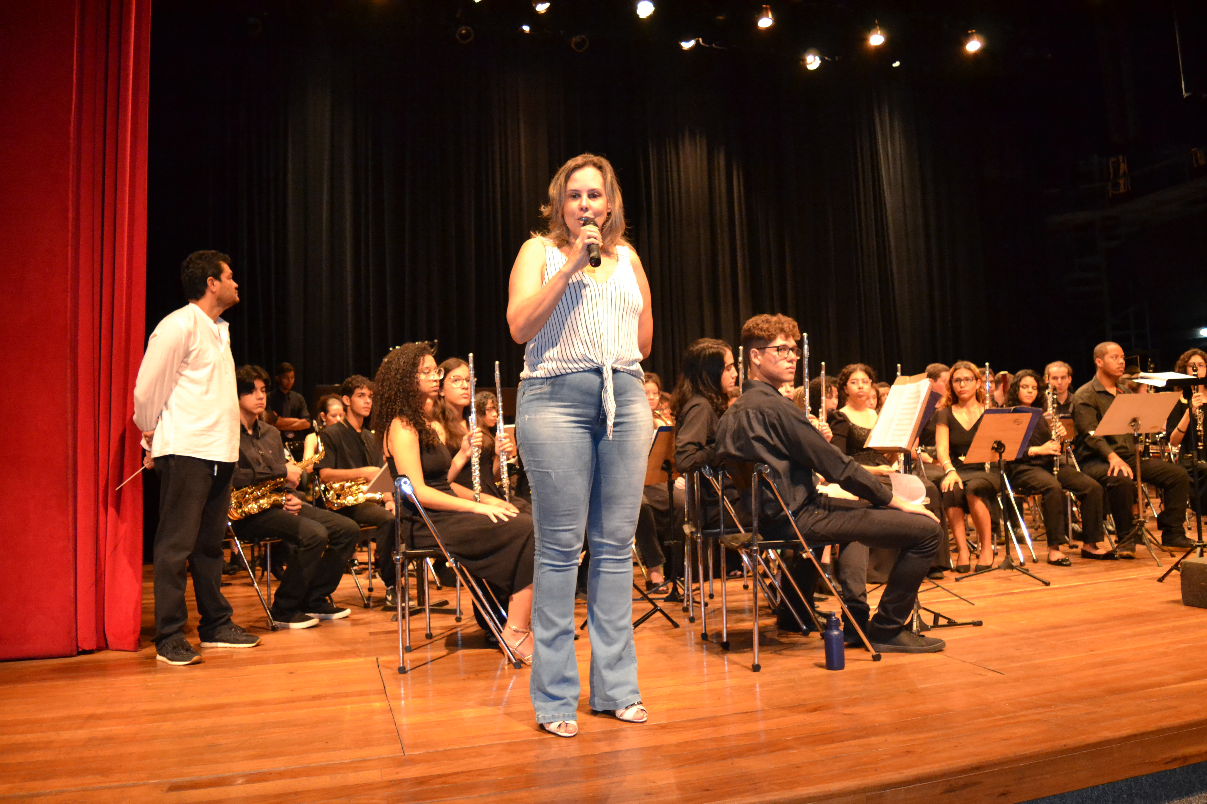 Coordenadora da área de Artes, professora Ana Lúcia Siqueira, durante abertura da Semana da Música 2022