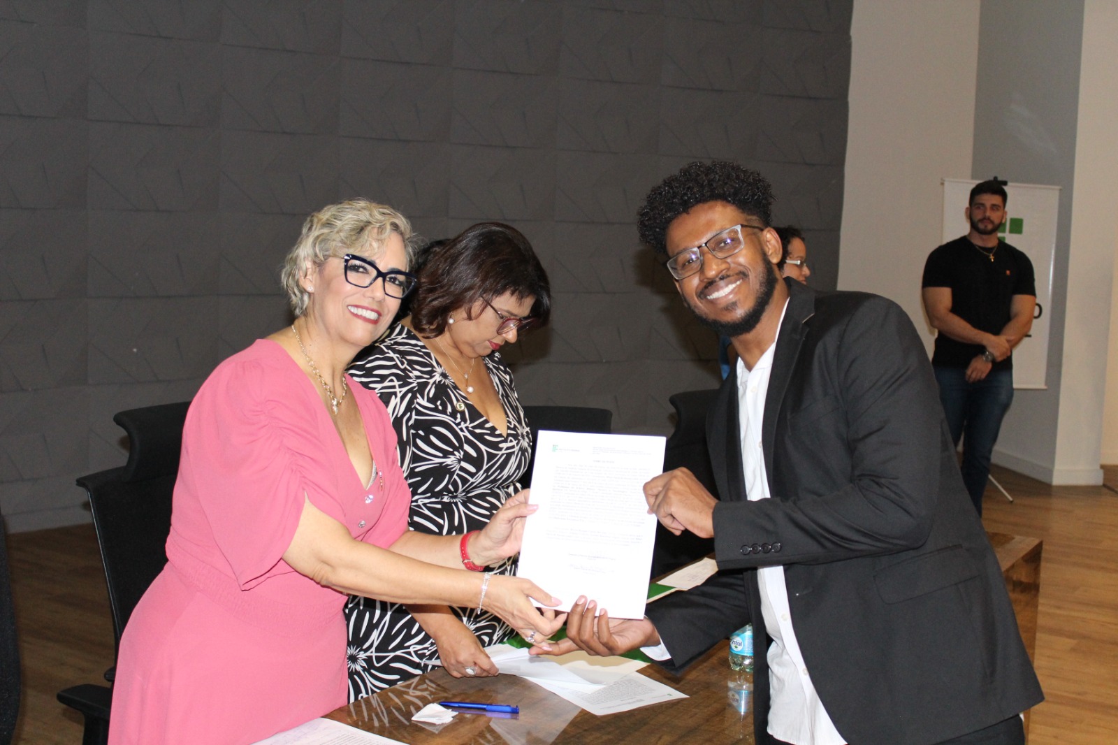 Professora Oneida e o docente recém-empossado Elton Faria de Souza Lima durante a solenidade