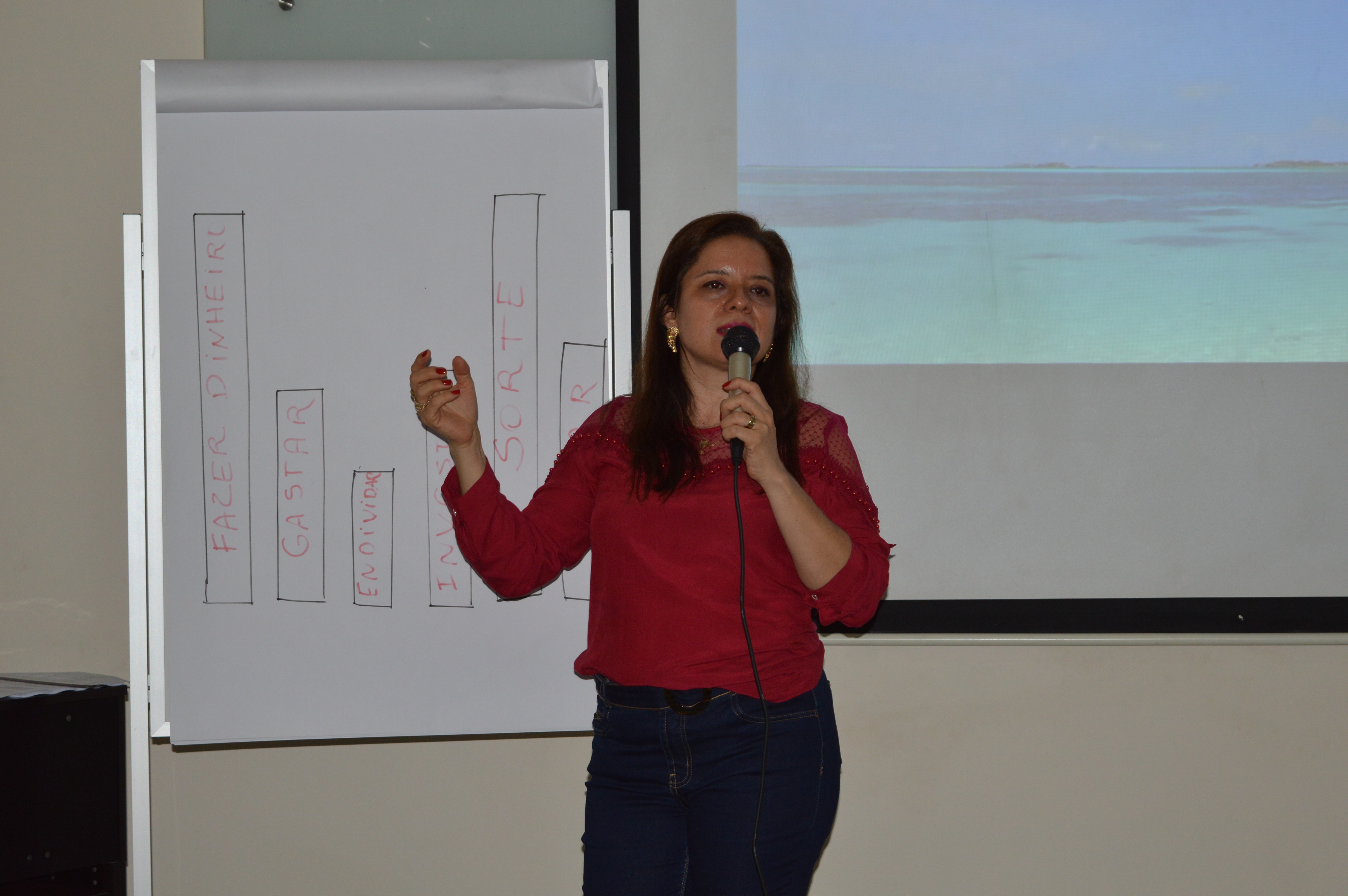 Servidora Cris Maia durante palestra sobre ansiedade e finanças