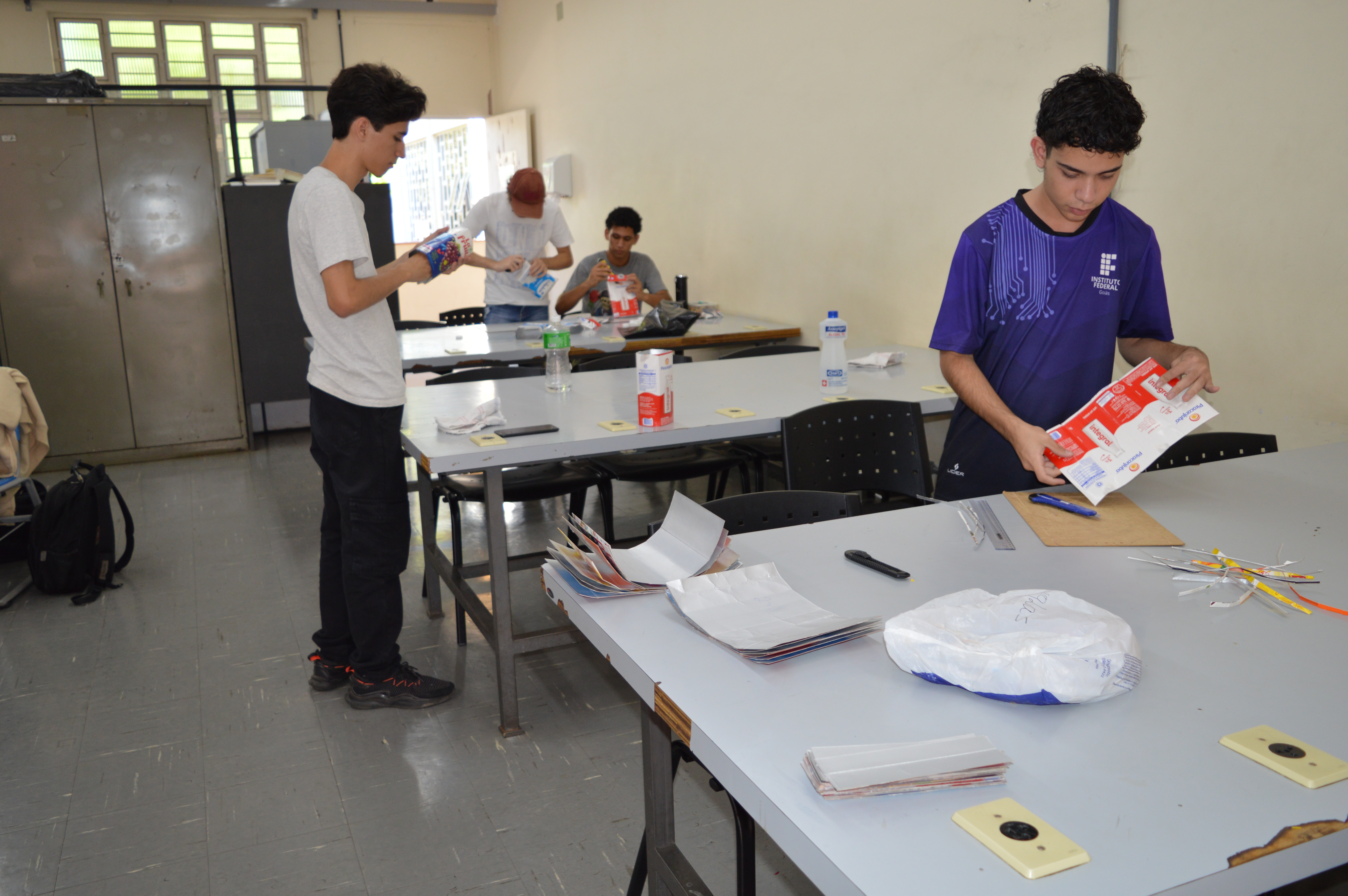 Caixas de leite viram carteiras estilosas e bem elaboradas pelas mãos dos estudantes dos cursos técnicos integrados ao ensino médio que integram a Miniempresa Eco Wallet S.A/E, que representa o Câmpus Goiânia do Instituto Federal de Goiás este ano no programa da Junior Achievement. A equipe, formada por 15 discentes, está na reta final da produção das 30 small cases que serão comercializadas durante a Feira do Programa Miniempresa, a ser realizada no sábado, dia 24 de junho, no Buriti Shopping.