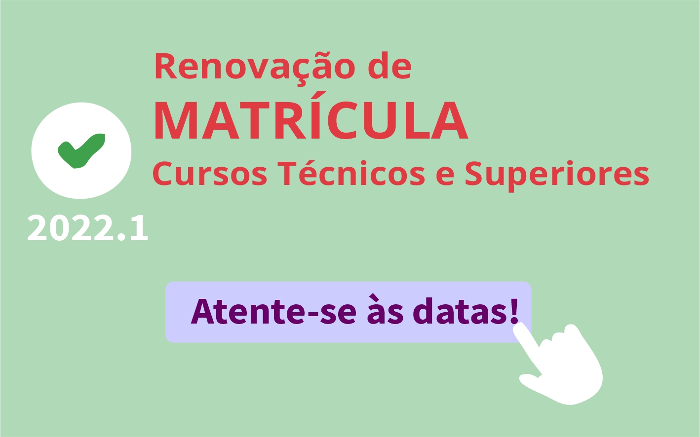 Prazo para renovação de matrícula está aberto de 21 de fevereiro a 12 de março