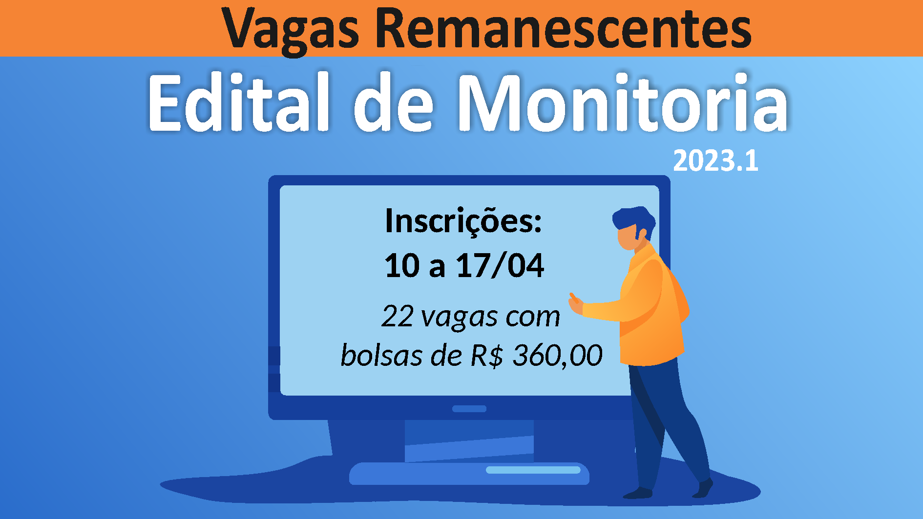 Seleção de monitoria disponibiliza 22 vagas remanescentes com bolsas de R$ 360