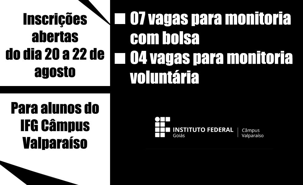 Alunos do Câmpus Valparaíso, seleção aberta para admissão de monitores bolsistas e voluntários