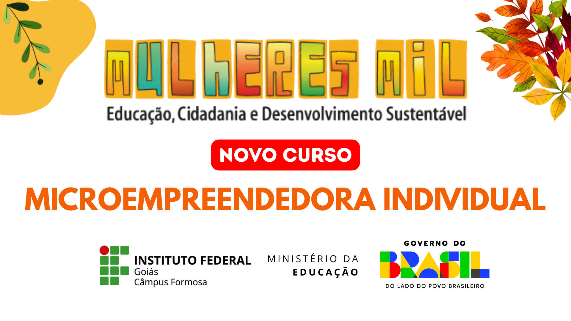 O Câmpus Formosa do Instituto Federal de Goiás (IFG) está com inscrições abertas para o curso de Formação Inicial e Continuada (FIC) de Microempreendedora Individual, ofertado pelo Ciclo IV do Programa Mulheres Mil, iniciativa do Governo Federal voltada à inclusão educacional, social e produtiva de mulheres em situação de vulnerabilidade. As interessadas podem se inscrever no período de 23 de março a 10 de abril, gratuitamente, por meio de formulário online ou de forma presencial no câmpus.