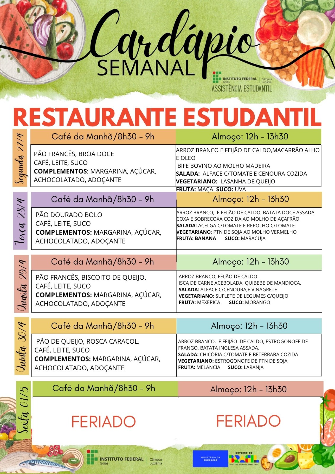 O IFG custeia a refeição dos alunos dos cursos Técnico Integrado ao Ensino Médio e EJA. Portanto, estes não precisam pagar para para fazer a refeição no restaurante estudantil. Os servidores, demais alunos dos cursos superiores e membros da comunidade externa que desejarem fazer café da manhã, almoço ou jantar deverão pagar pelo serviço, o qual tem os seguintes valores: