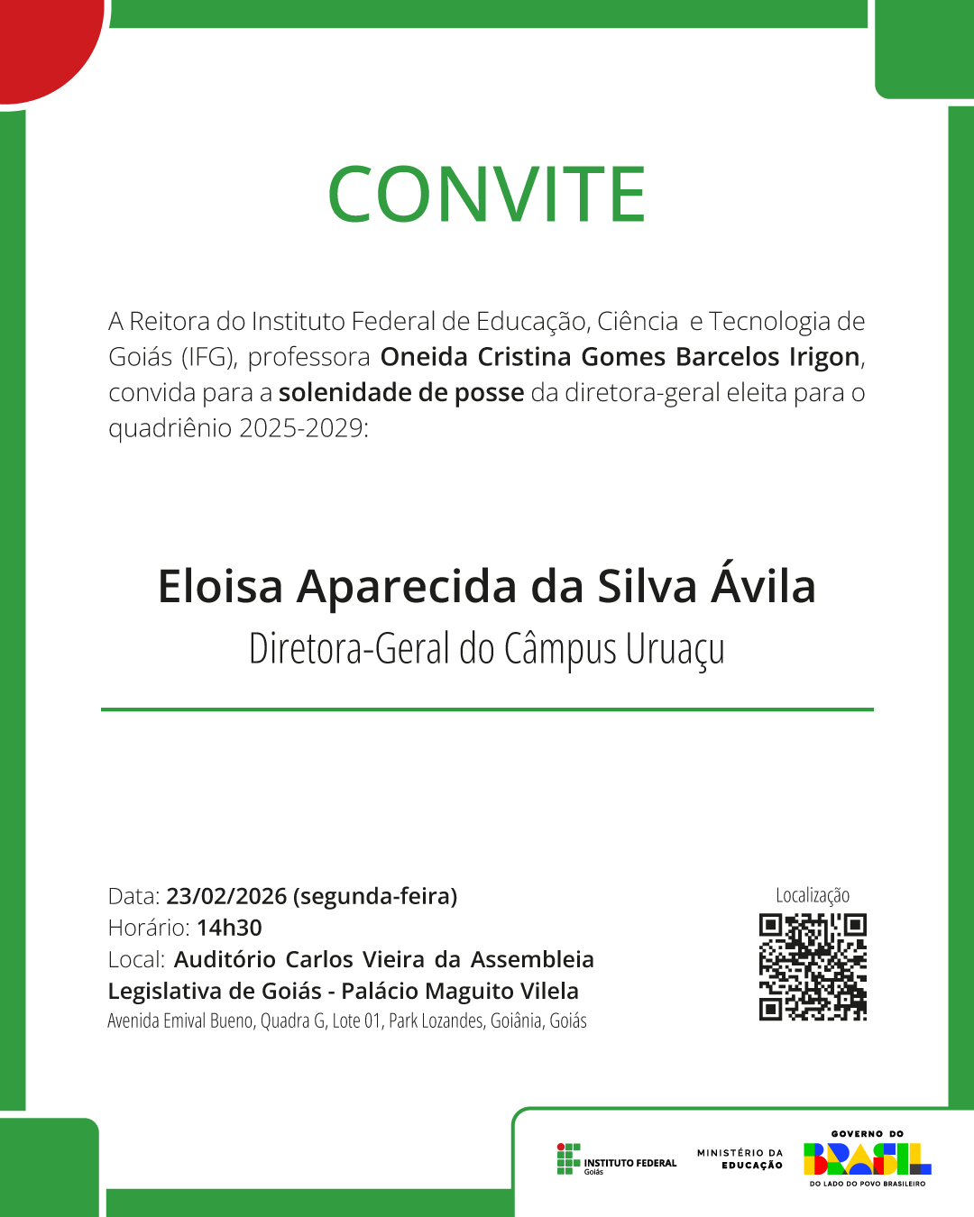 Convite para posse da diretora-geral do Câmpus Uruaçu, Eloisa Aparecida da Silva Ávila