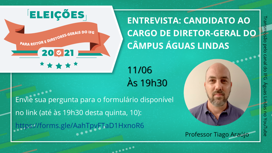 Transmissão será pelo canal do YouTube IFG – Águas Lindas. Comunidade pode enviar perguntas previamente via formulário