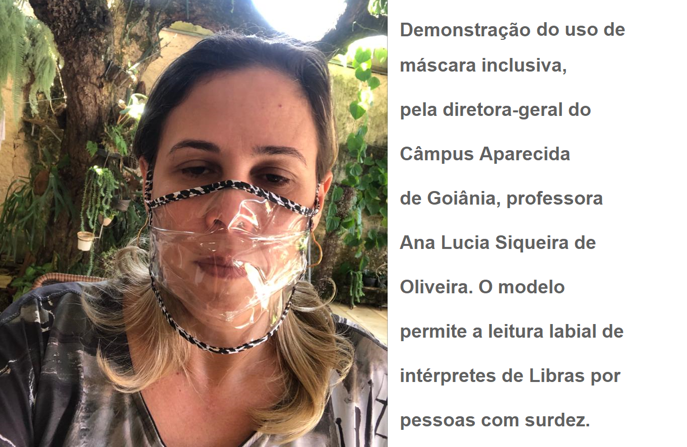 Considerando a necessidade de atenção aos alunos surdos do curso de Licenciatura em Pedagogia Bilíngue e a demandas específicas que forem manifestadas pelos câmpus, estão sendo confeccionadas também máscaras com plástico cristal, a serem utilizadas pelos intérpretes de Libras. A utilização do material transparente possibilita a leitura labial, que é um recurso utilizado por alguns surdos para auxiliar na compreensão das mensagens. O modelo que aparece na foto das máscaras-piloto é uma criação da estilista e modelista Dora Lucena, ex-aluna da professora Yane Ondina, tendo sido adquirida para avaliação dos intérpretes de Libras sobre viabilidade do produto para o trabalho cotidiano.