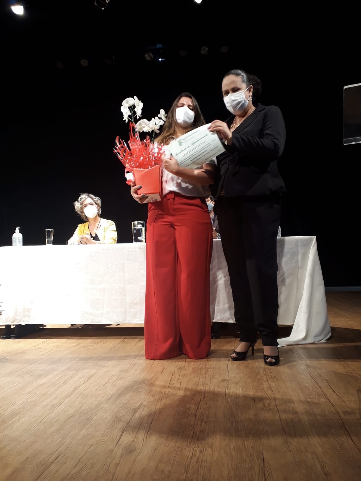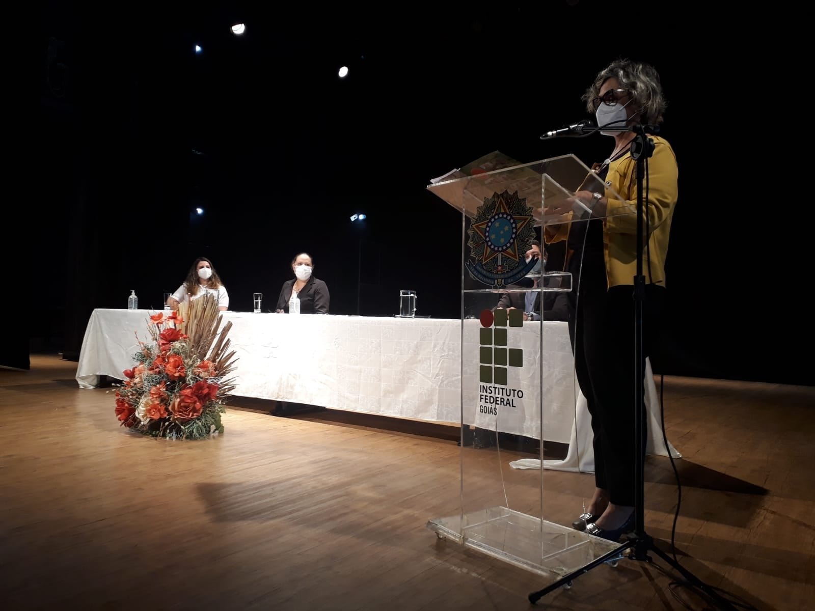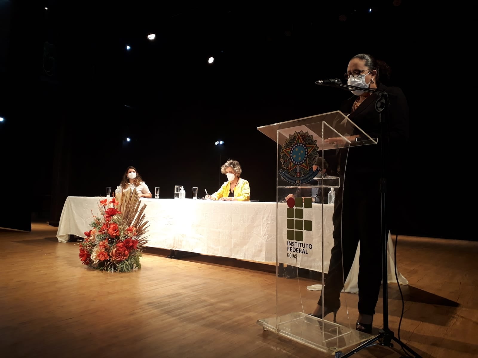 Além da reitora e da nova diretora, a mesa diretiva foi composta pelo secretário municipal de Indústria, Comércio, Trabalho, Emprego e Renda, Alex Martins, e pela ex-diretora do IFG Anápolis, professora Elza Gabriela Godinho Miranda, que acaba de deixar o cargo e foi homenageada durante a cerimônia pelo trabalho realizado à frente do câmpus.